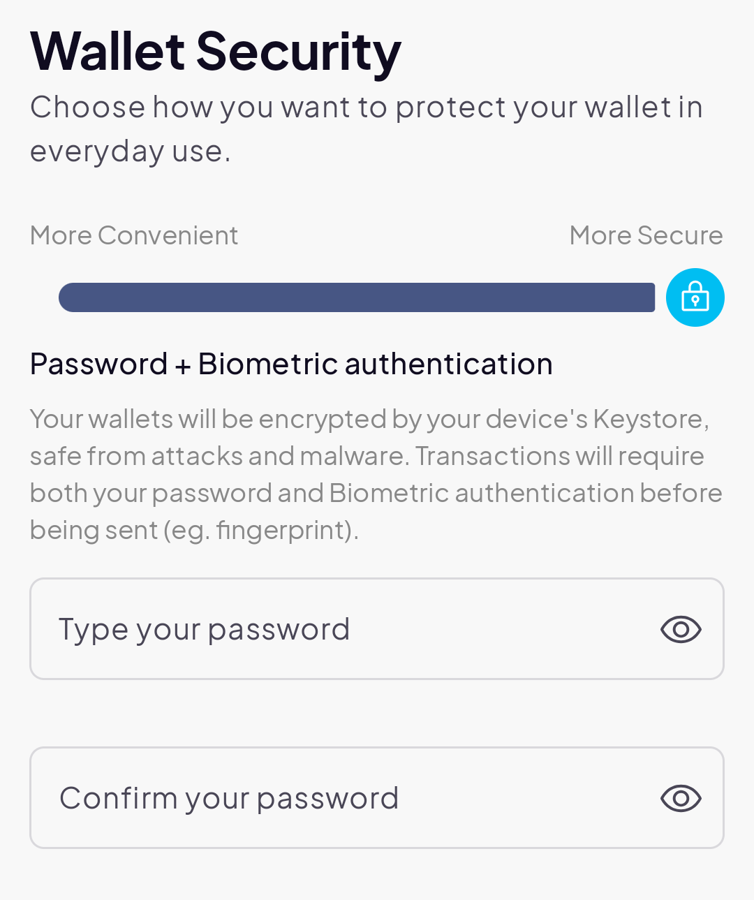 If an attacker gets past the PIN, each and every transaction sending from your device will still need your transaction password if you set one. Your keys are encrypted and the app can't do anything without decrypting them with your password first. Setting a strong password makes it extremely difficult to brute-force, possibly taking hundreds of thousands of years. Assuming that whoever accesses your lost device doesn't just factory reset it or fails to enter the PIN too many times, you will have time to restore your wallet on a new device and move the funds to a new phrase that you are sure is safe. Coinomi also allows biometric 2FA. Let's say your phone was stolen by a super-villain that has all the computer power in the world to crack your password. If you set the most secure encryption option in your wallet's settings, the attacker still can't access your funds since he doesn't have your fingerprint. | ![]() |