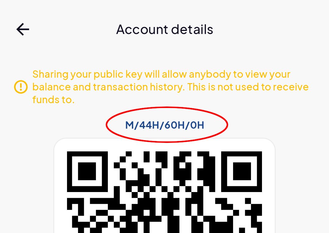 - Take note of the Derivation Path value. It should look something like "M/44H/60H/0H"